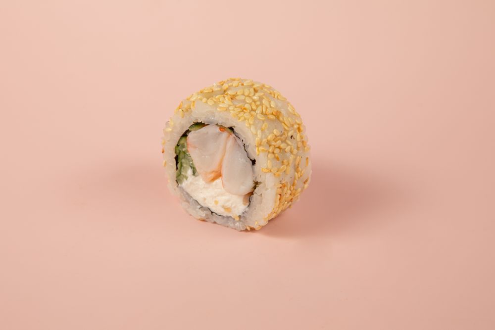 Нори, рис, творожный сыр, огурец, , креветка , кунжут