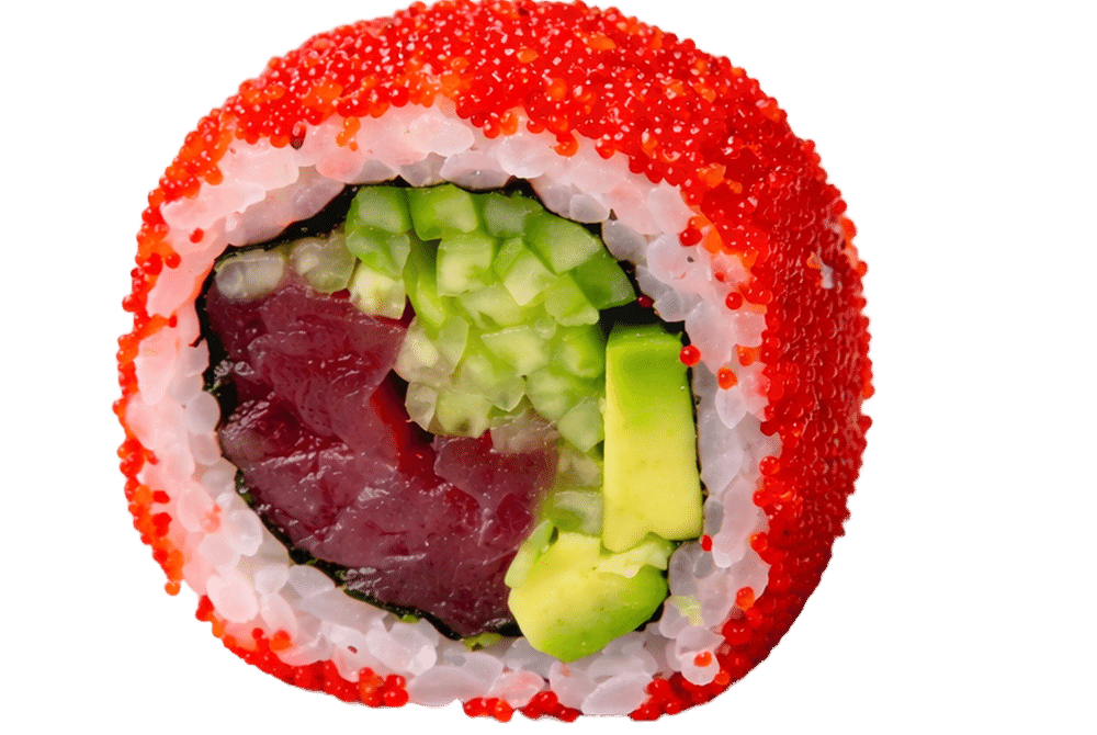 Нори, рис, тунец, авокадо, огурец, икра масаго